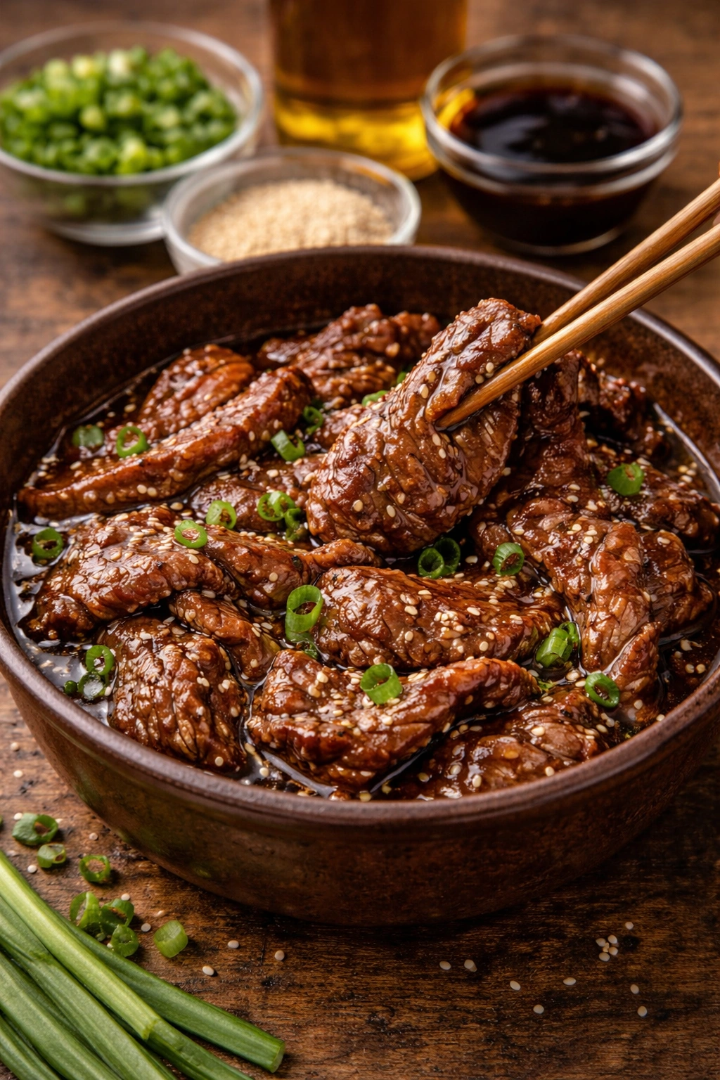 Add the seared beef and broccoli to the wok. Toss everything together until well-coated and heated through.Garnish with sesame seeds and serve hot over steamed rice.