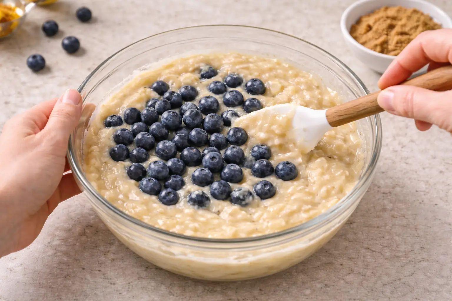 • Fold blueberries gently to prevent them from bursting and staining the batter.