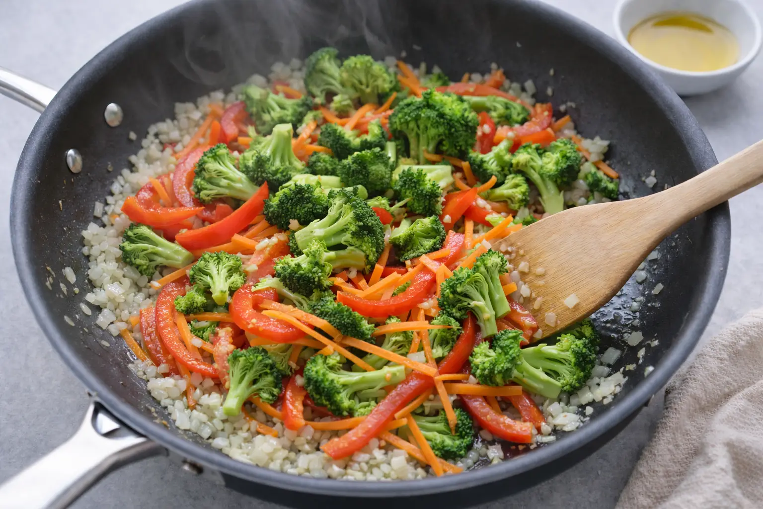 Next, toss in the bell pepper, carrot, and broccoli florets. Cook, stirring occasionally, until the vegetables are slightly tender but still vibrant—this takes about 3 to 4 minutes.