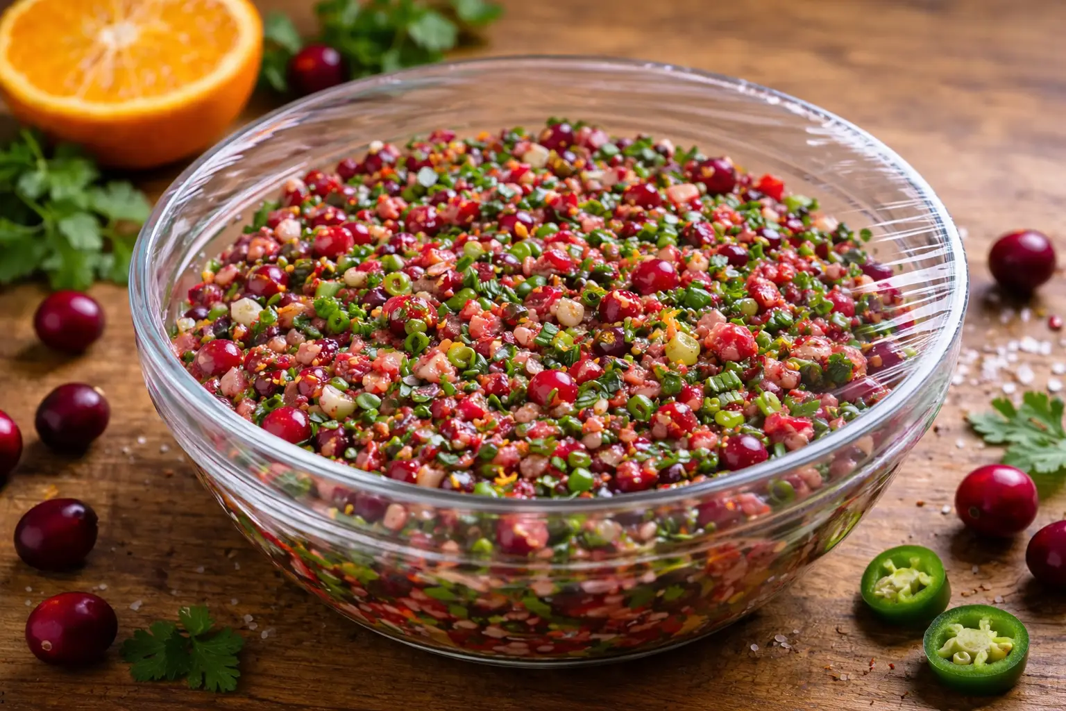 Cover the bowl and refrigerate the cranberry mixture for at least 30 minutes to allow the flavors to meld.