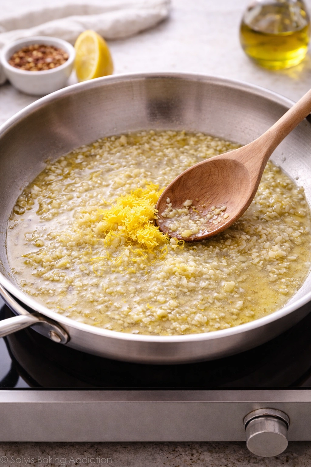 Add lemon zest and lemon juice to the skillet, stirring for about a minute.