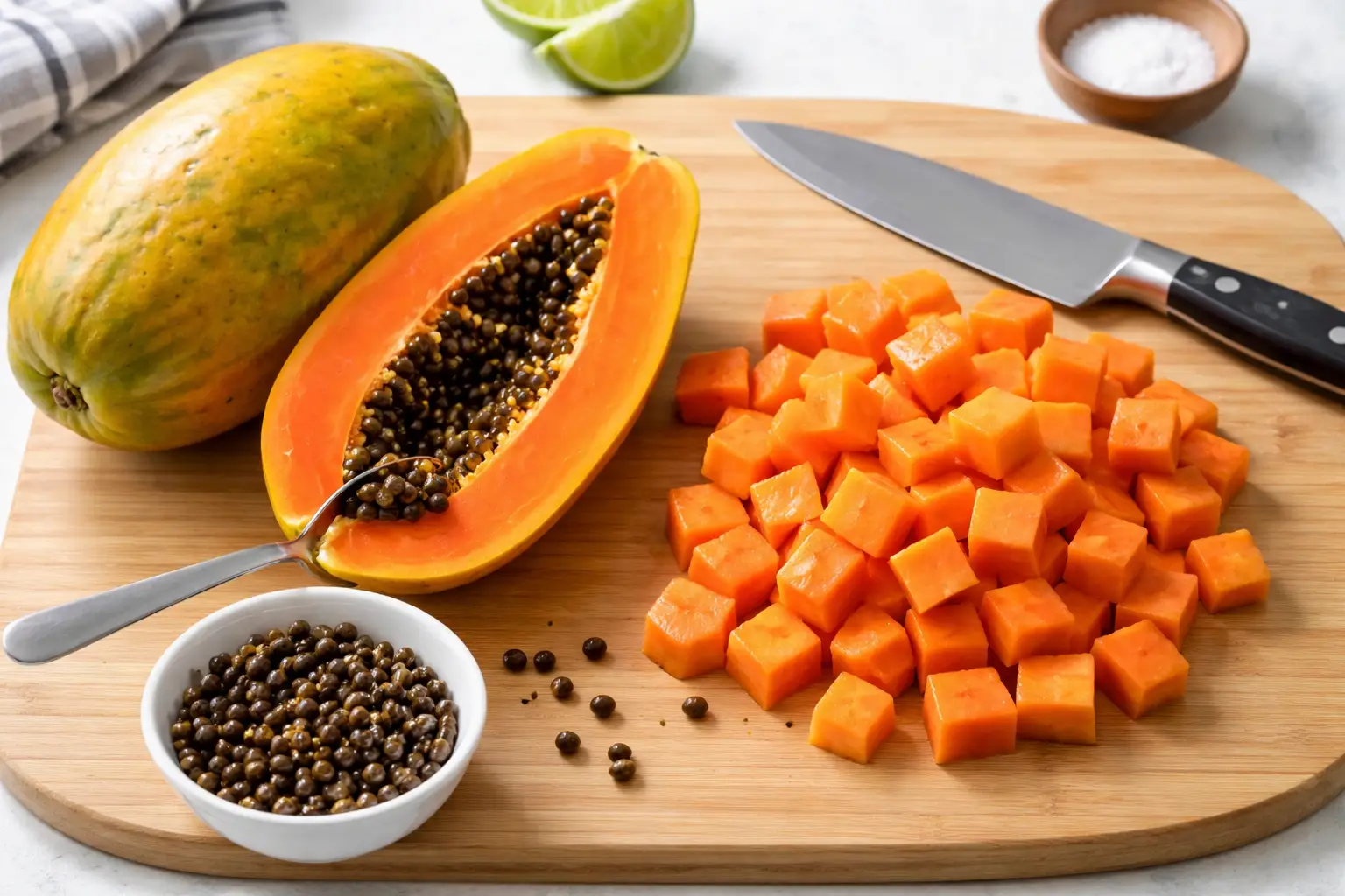 Choosing quality ingredients makes all the difference. First, select papayas that give slightly when pressed but aren’t mushy. Then, look for vibrant orange flesh without dark spots or overly soft areas.