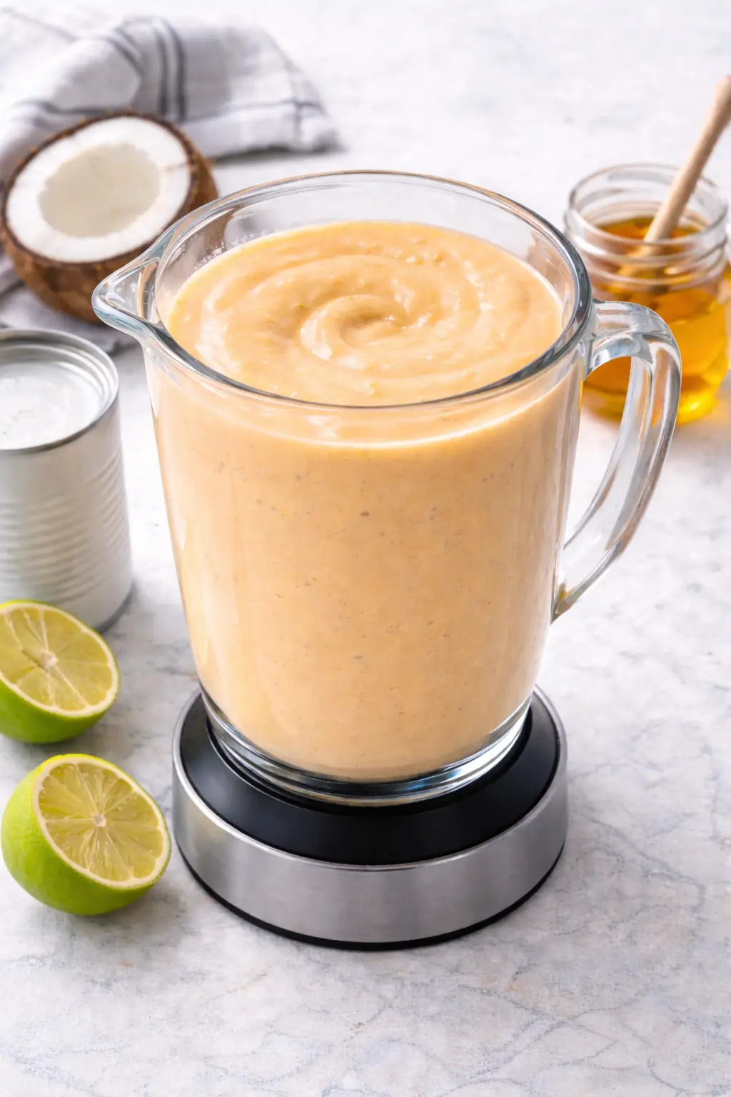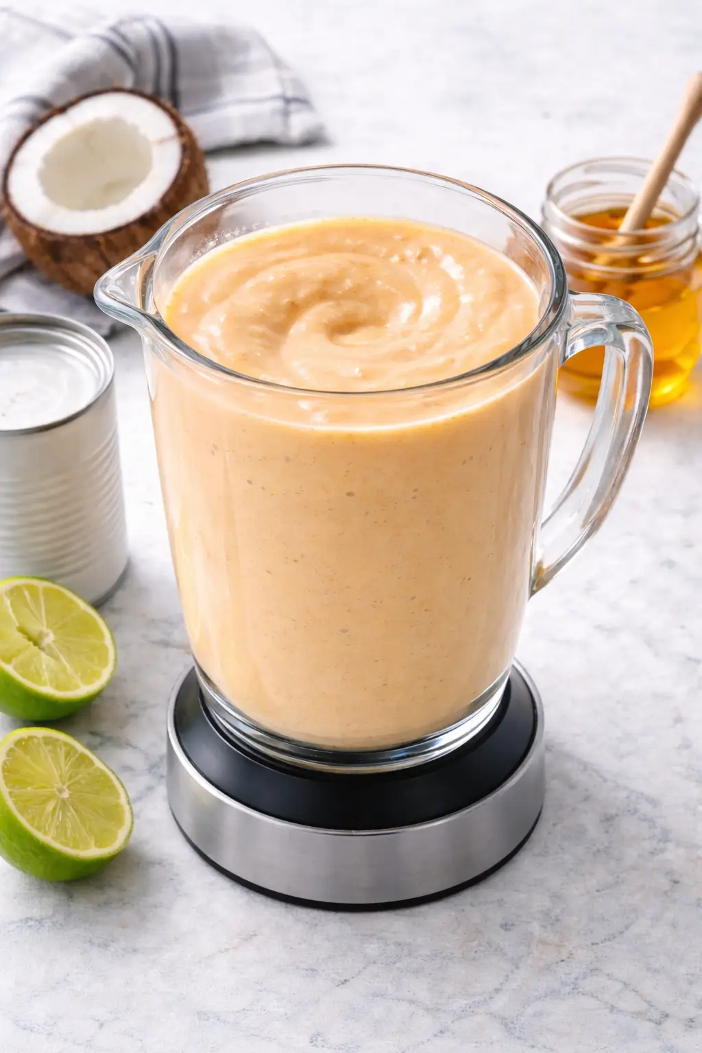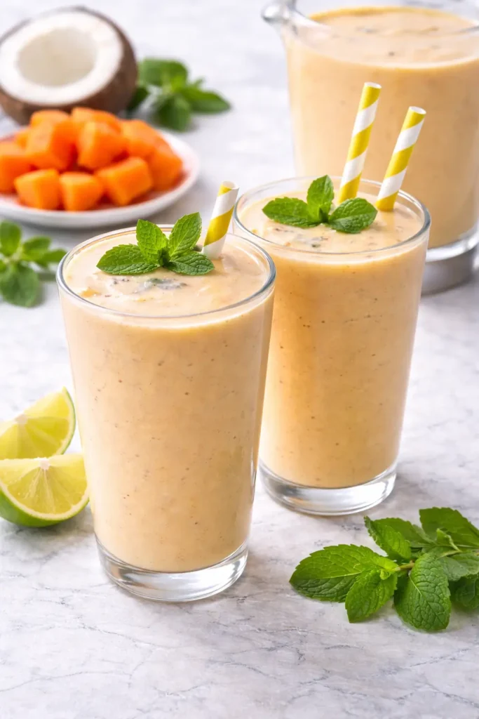 A creamy papaya lime smoothie blended with coconut milk and fresh lime juice—refreshing, naturally sweet, and perfect for a quick, energizing breakfast or healthy snack.