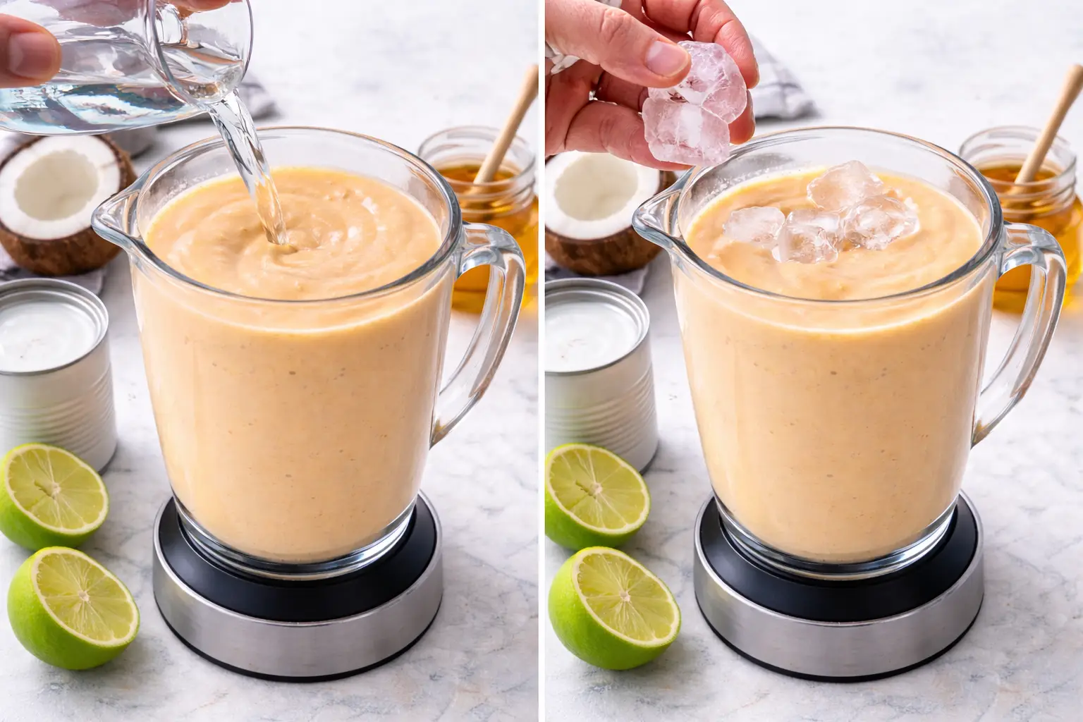 Subsequently, blend on high speed for 60-90 seconds until completely smooth. If the mixture seems too thick, gradually add more water. Conversely, add more ice if you prefer a thicker texture.