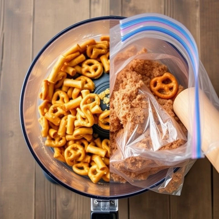 Crush pretzels in a food processor until they resemble coarse breadcrumbs.
