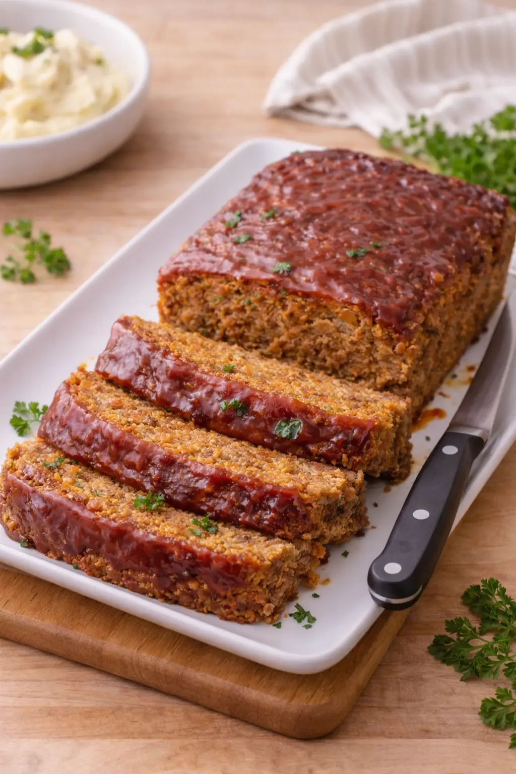 Allow the meatloaf to rest for 10–15 minutes before slicing.