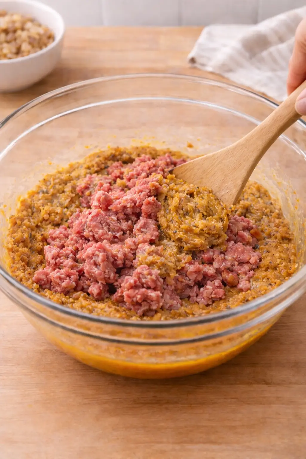 5. Mix in the meat: Gently fold in your ground meat, being careful not to overmix, which can make the meatloaf tough.