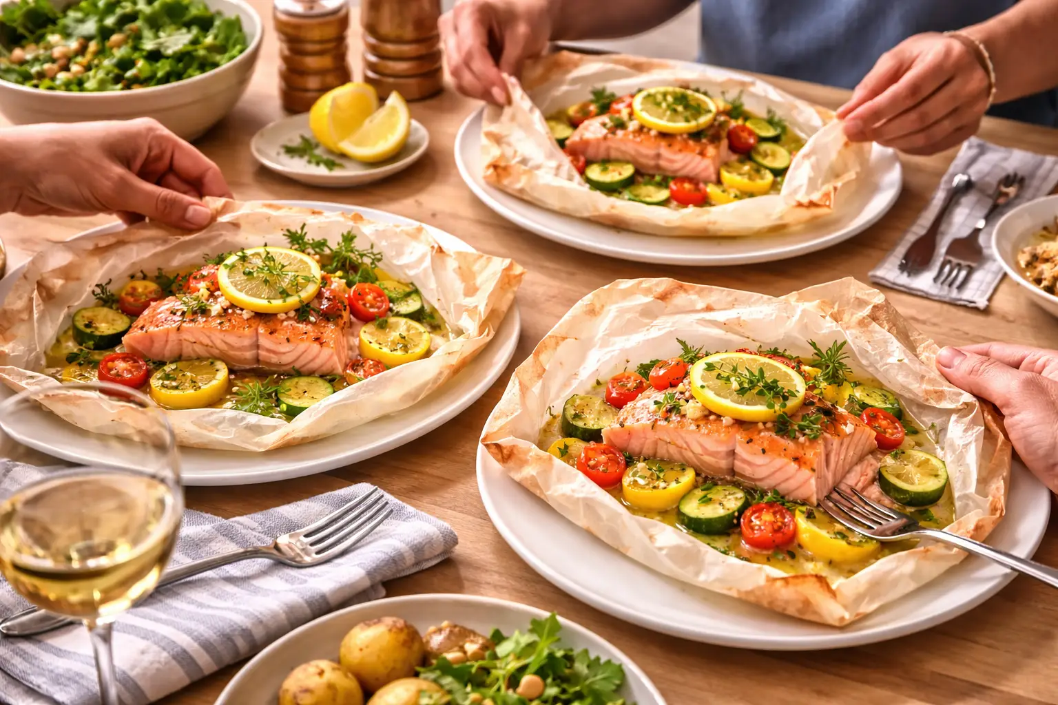 Serve immediately and let each person open their own parchment packet for a fresh, aromatic presentation.