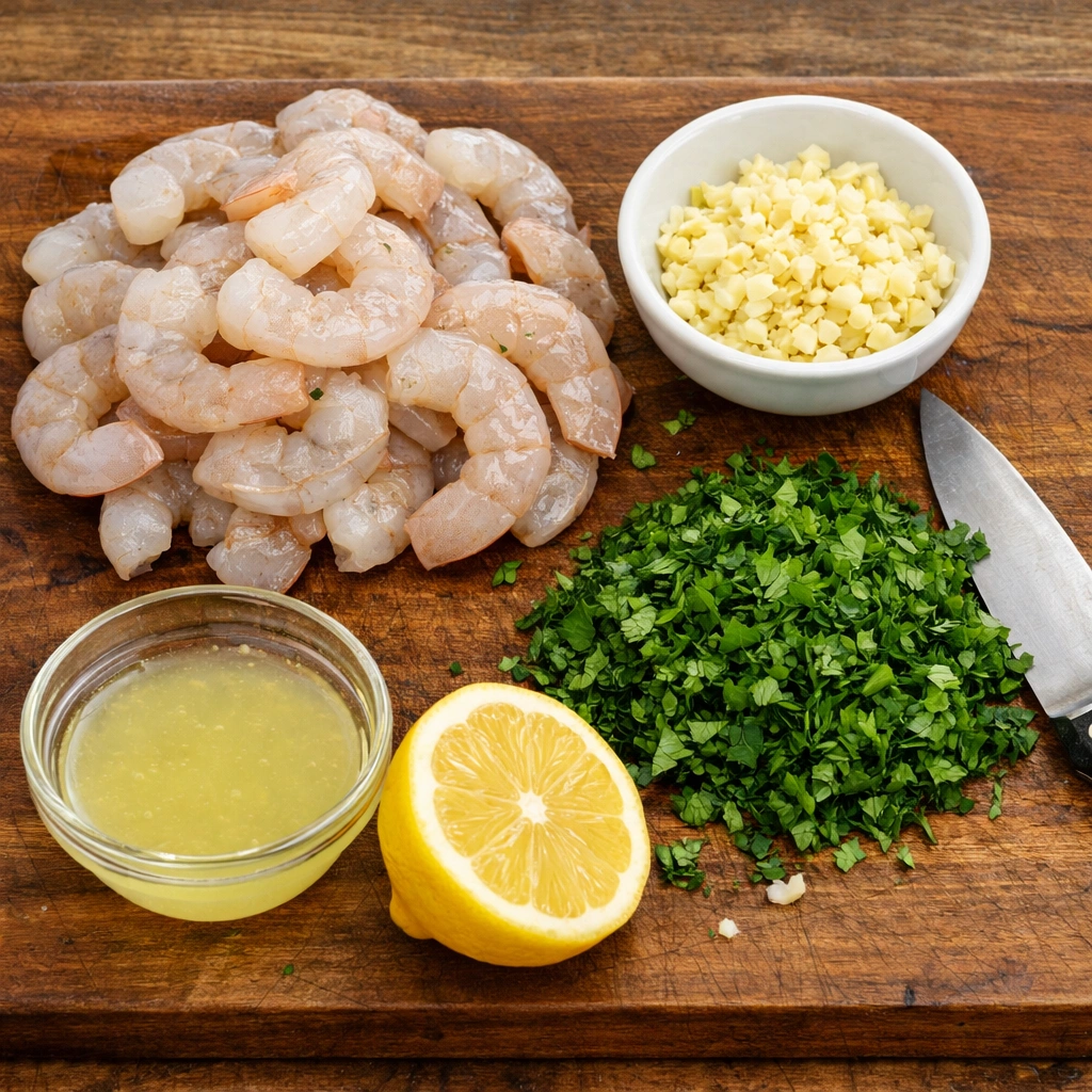 Peel and devein the shrimp, mince the garlic, chop the parsley, and juice the lemon.Ensure all ingredients are ready before starting to cook for a smooth process.