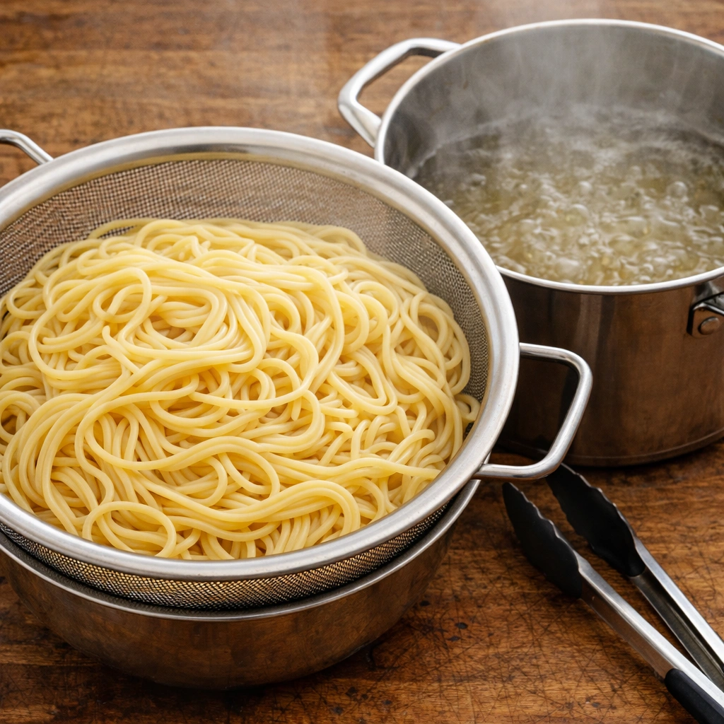 1. Cook the pasta according to package instructions until al dente. Reserve a cup of pasta water before draining.