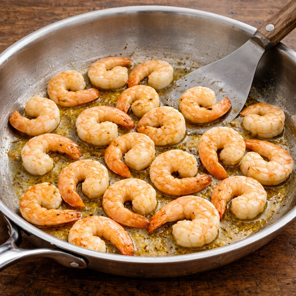 3. Increase heat and add shrimp to the skillet, cooking for 1-2 minutes per side until pink and opaque.
