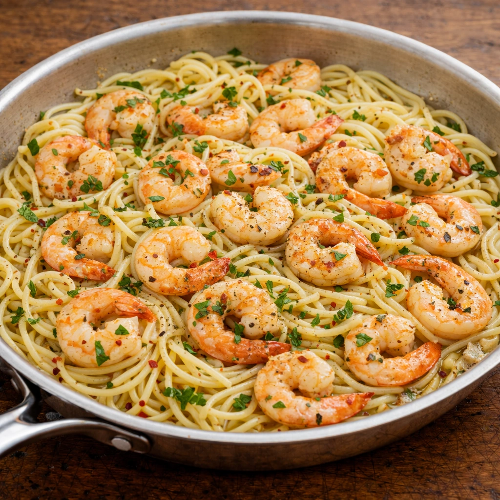 Delight in the succulent shrimp paired with al dente pasta in a buttery, garlicky sauce that's both elegant and effortless.