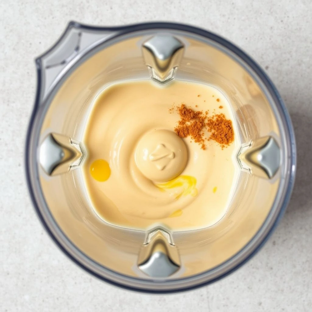 In a high-speed blender, combine soaked cashews, plant milk, nutritional yeast, lemon juice, Dijon mustard, garlic powder, onion powder, smoked paprika, turmeric, salt, pepper, olive oil (if using), and optional cooked carrot or sweet potato. Blend until the mixture is completely smooth, stopping to scrape down the sides as needed. The sauce should be thick, creamy, and vibrant.