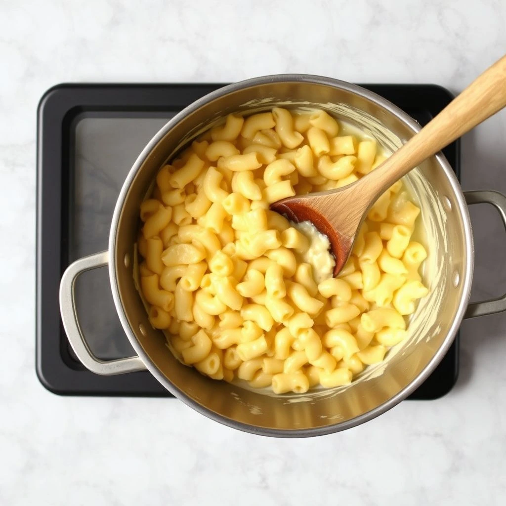 Place the pot over low heat and warm everything together for 2–3 minutes, stirring until hot and creamy. Allow the mac and cheese to rest for 5 minutes before serving—this helps the sauce cling better to your pasta.
