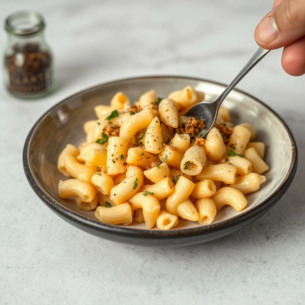 Plate up your mac and cheese, add freshly cracked black pepper, and enjoy every comforting bite! For extra flair, sprinkle with herbs, sautéed veggies, or crunchy breadcrumbs.
