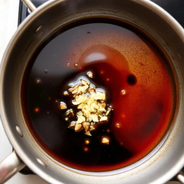 - In a small pan, whisk together soy sauce, honey, brown sugar, rice vinegar, and minced garlic. Heat on medium until gently bubbling.