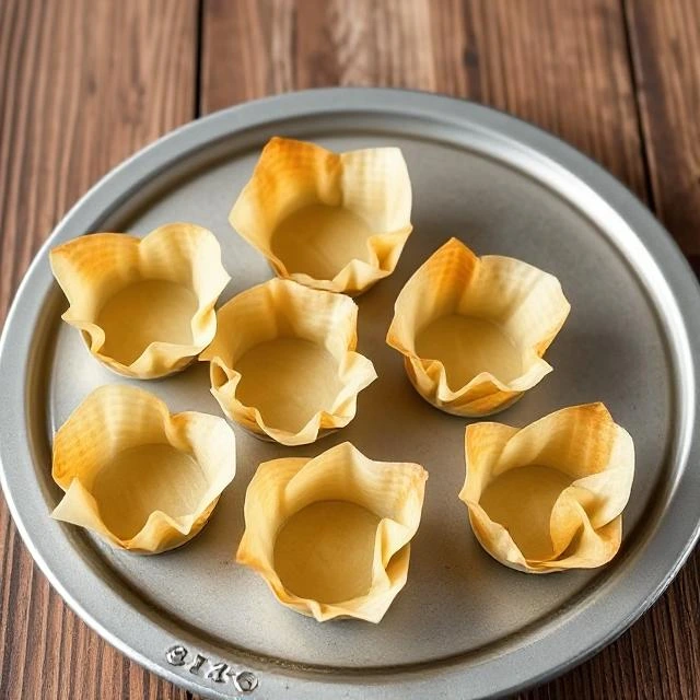 - Bake the cups for 8–10 minutes until they’re lightly golden and crisp. Remove and let cool slightly while you prepare the filling.