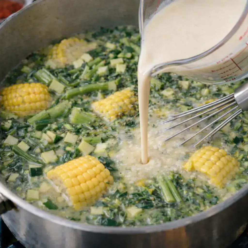 Thicken the soup: Whisk together the masa harina and water until smooth. While stirring constantly, slowly pour this mixture into the soup. This will give the broth a slightly thickened consistency and add a subtle corn flavor.