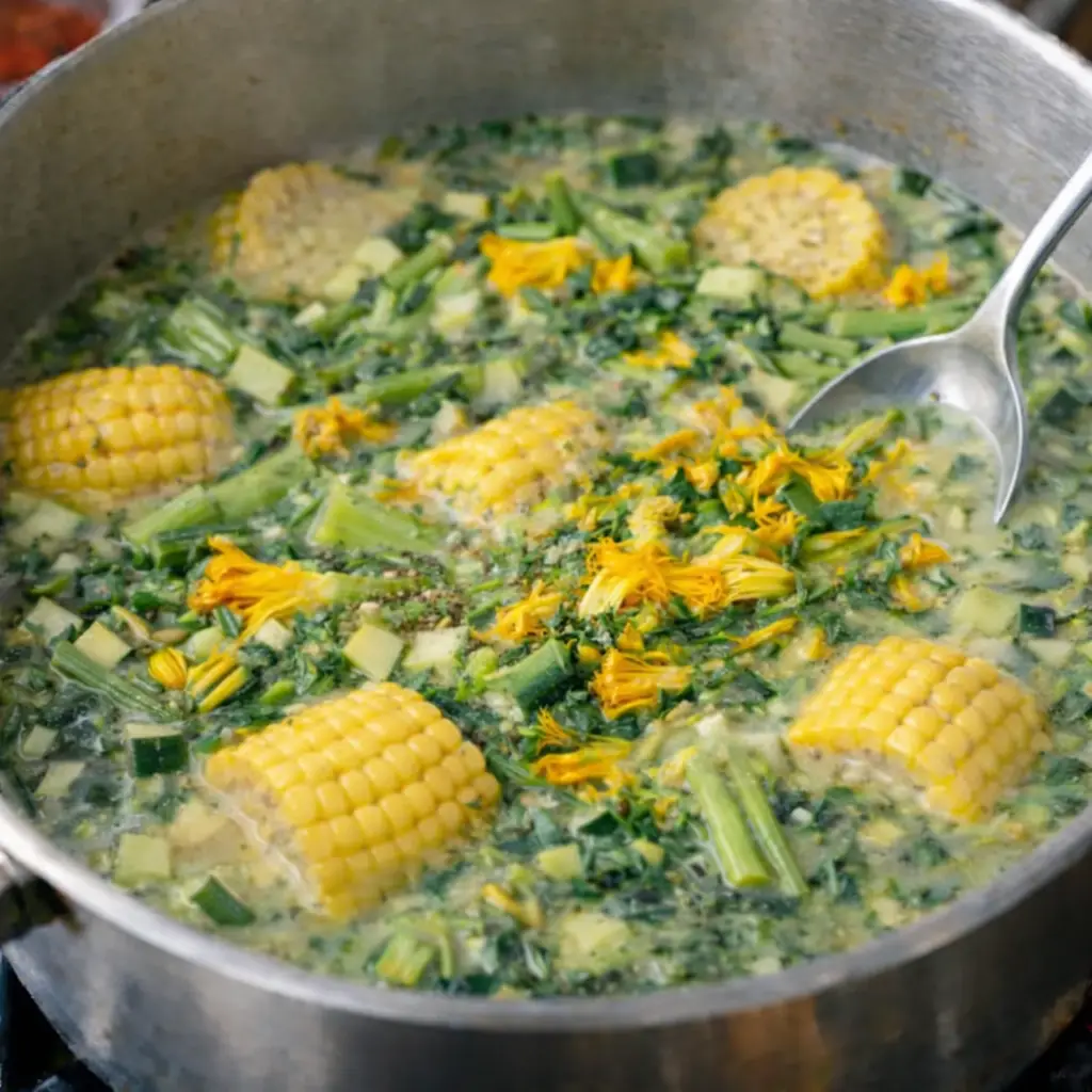 Authentic Oaxacan Sopa de Guías is a traditional Mexican squash vine soup that celebrates the heart of Oaxaca’s farm-to-table cooking. Made with tender squash vine shoots, fresh squash blossoms, sweet corn, and zucchini, this rustic dish honors the entire squash plant in a beautiful zero-waste tradition.