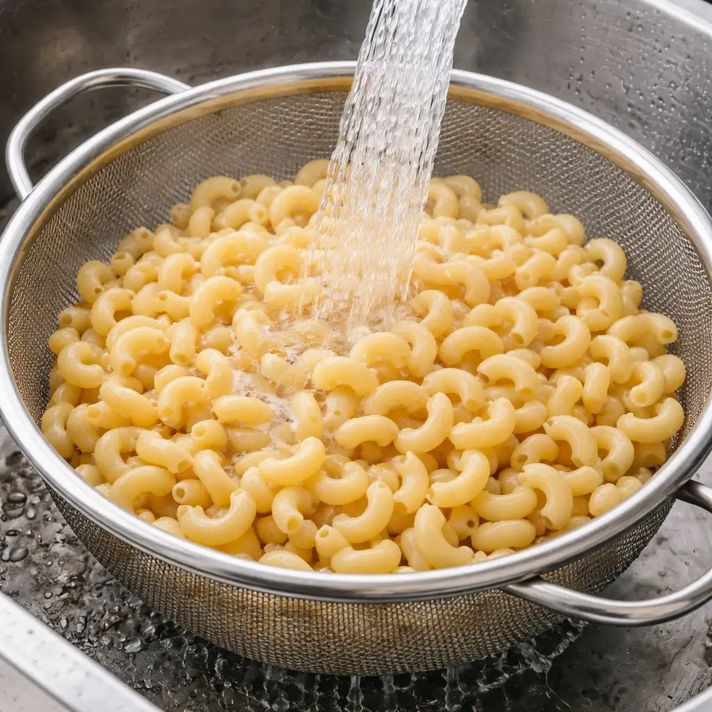 Drain thoroughly, then rinse under cold water to stop cooking.