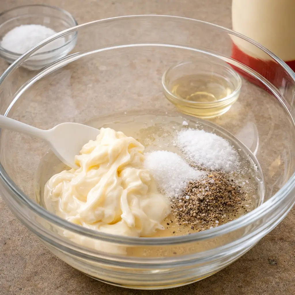 In a large bowl, mix the Japanese mayonnaise, rice vinegar, sugar, salt, and pepper. As a result, you’ll have a creamy, tangy dressing that perfectly complements the other ingredients. If you can’t find Japanese mayonnaise, regular mayonnaise with an extra splash of rice vinegar works as a substitute.