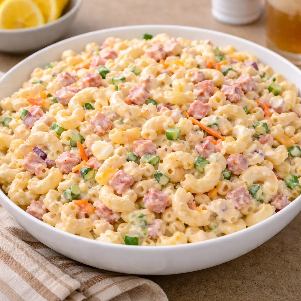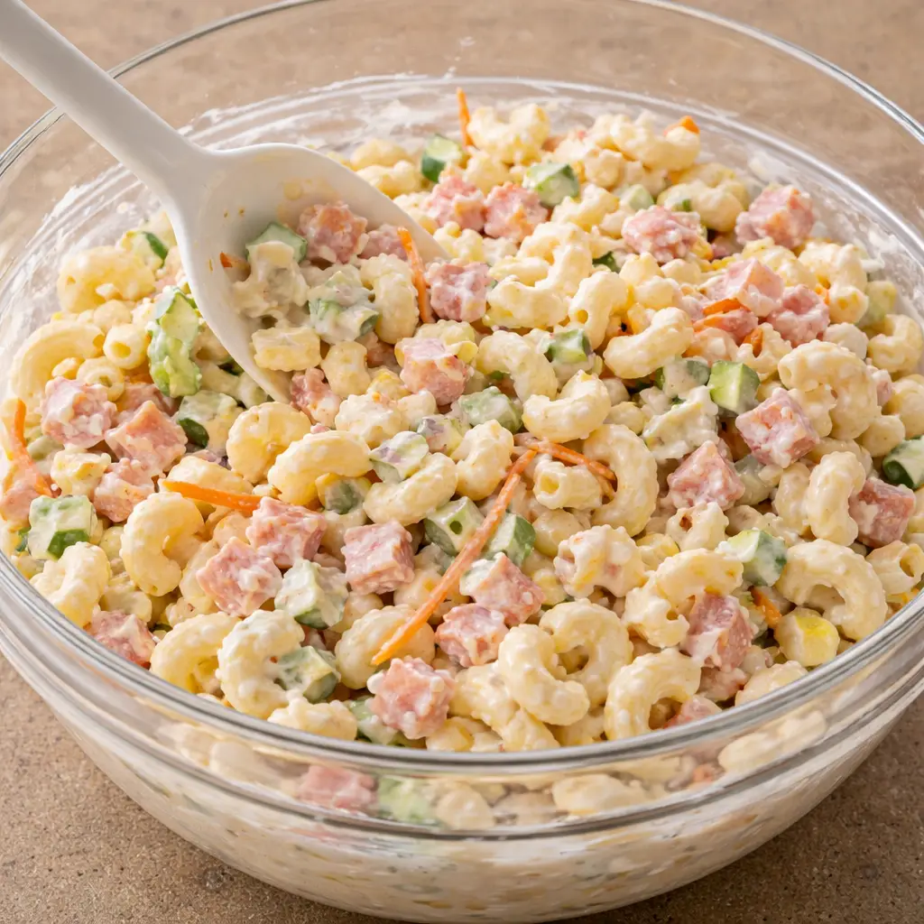 A creamy Japanese macaroni salad with crisp vegetables, ham, and tangy mayo dressing—quick, refreshing, and perfect as a light meal or flavorful side dish.