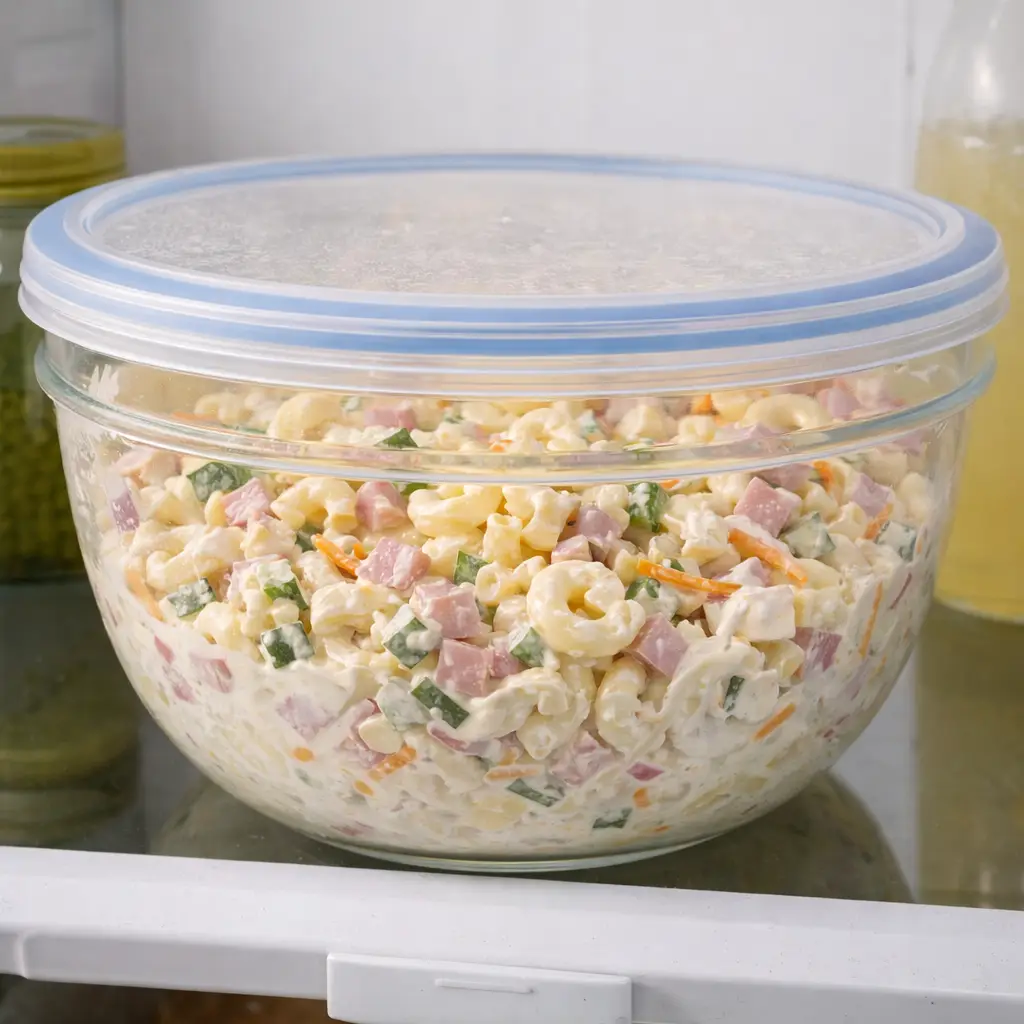 - Cool completely before mixing – This prevents the mayonnaise from breaking down and keeps your vegetables crisp.