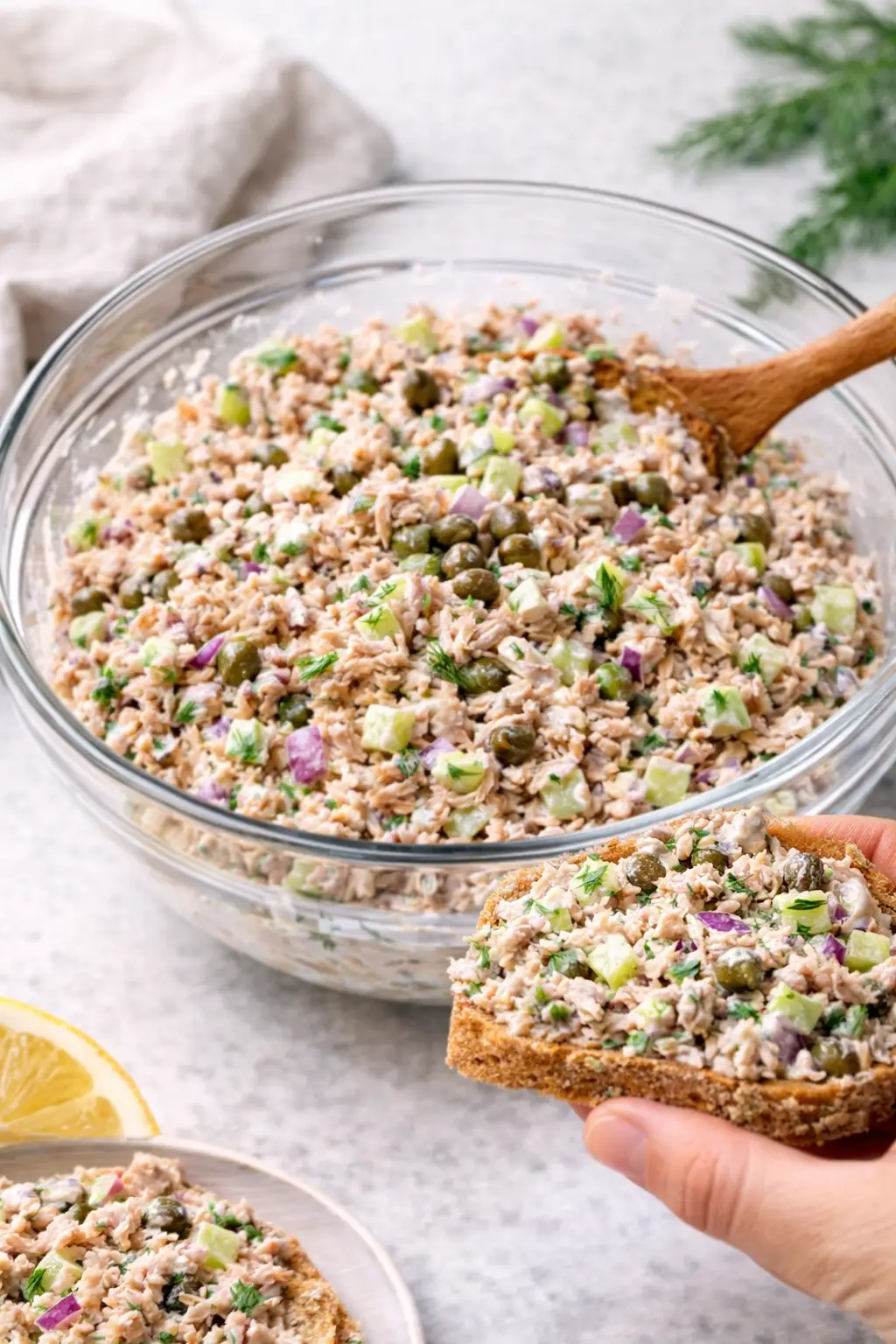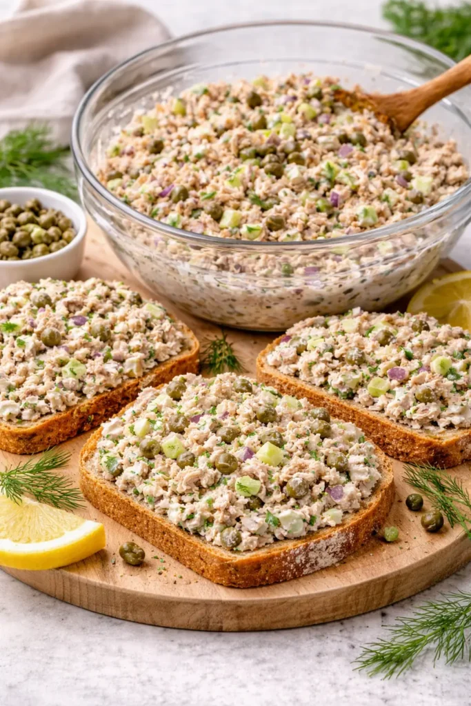 A creamy, protein-rich tuna salad made with Greek yogurt, fresh herbs, and crunchy vegetables—perfect for a quick, healthy lunch or easy meal prep.