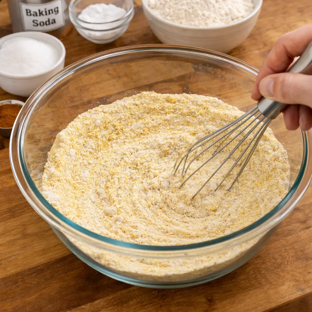 2. Mix Dry Ingredients: In a large bowl, whisk together cornmeal, flour, sugar, baking powder, baking soda, salt, and cinnamon until well combined.