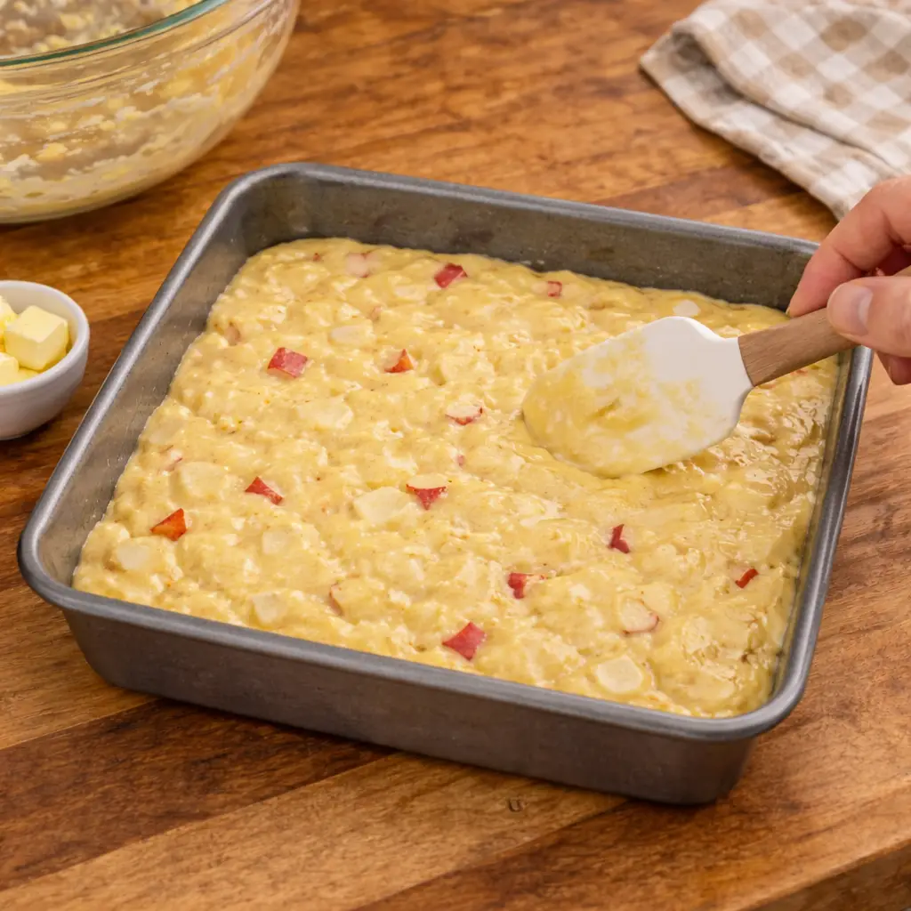 1. Preheat and Prepare: First, preheat your oven to 375°F (190°C). Then, grease a 9-inch square baking pan or a 10-inch cast-iron skillet.