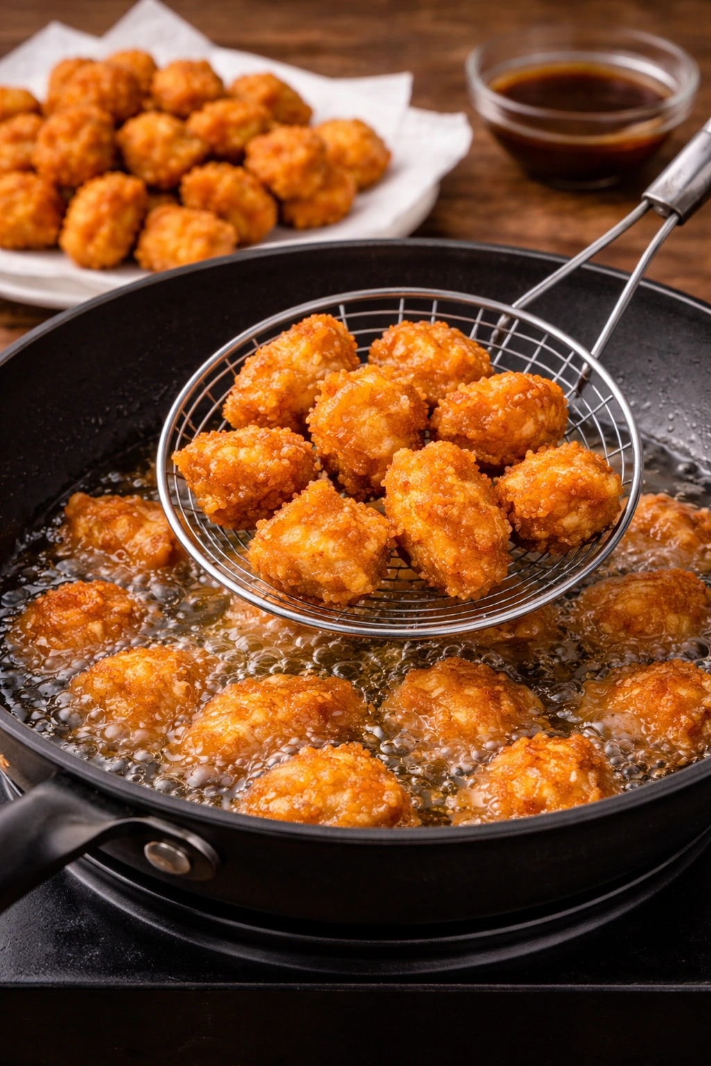 The secret to irresistibly crispy chicken is double frying. Frying the chicken twice ensures a golden, crunchy exterior while keeping the inside tender and juicy—even after being tossed in sauce.