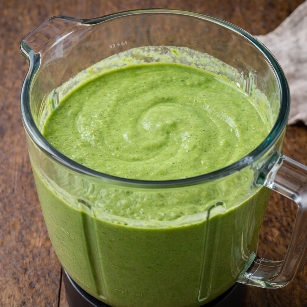 Blend on high speed until smooth and creamy, ensuring all ingredients are fully incorporated.