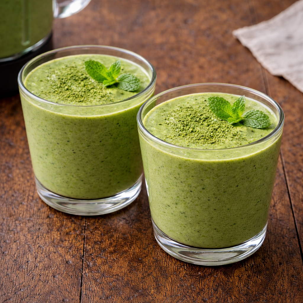 Pour the smoothie into a glass and garnish with a sprinkle of matcha powder or fresh mint leaves.Serve and Indulge