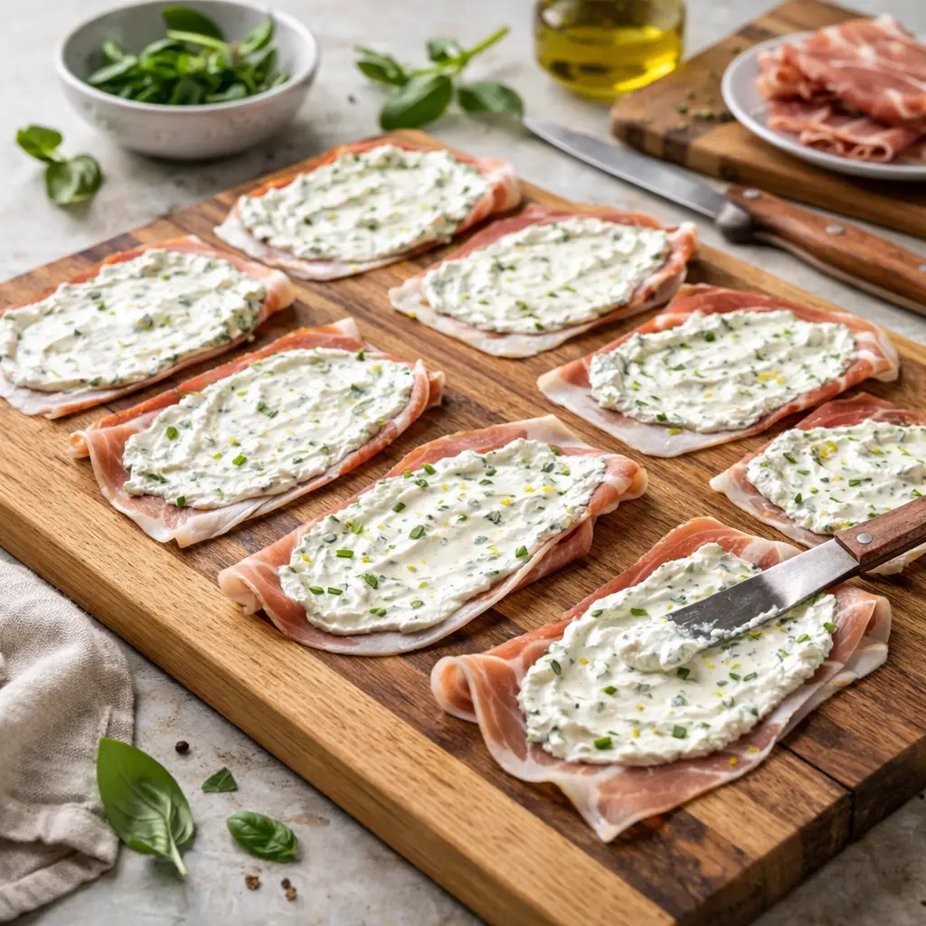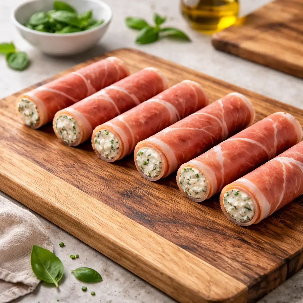 Creamy herb-filled prosciutto rolls made with fresh chives, basil, and lemon zest. This easy no-cook appetizer is perfect for parties, quick snacks, or elegant entertaining in minutes.