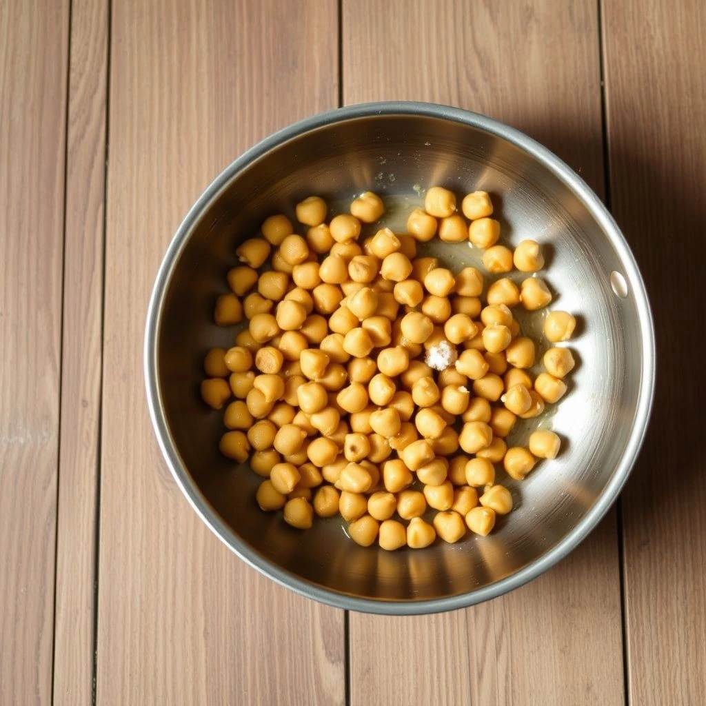 In a skillet, heat olive oil over medium heat. Add chickpeas and season with a pinch of salt. Sauté for 3–4 minutes for crispier texture, or leave as-is for a softer bite.