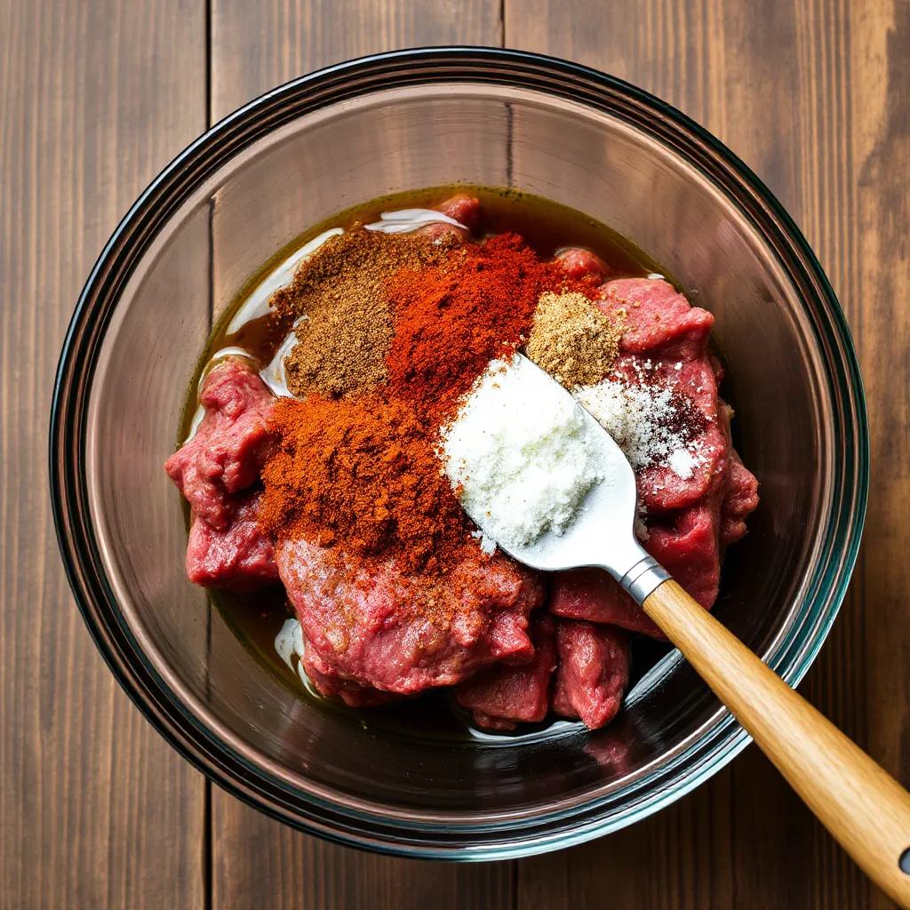 - Marinate the Beef: