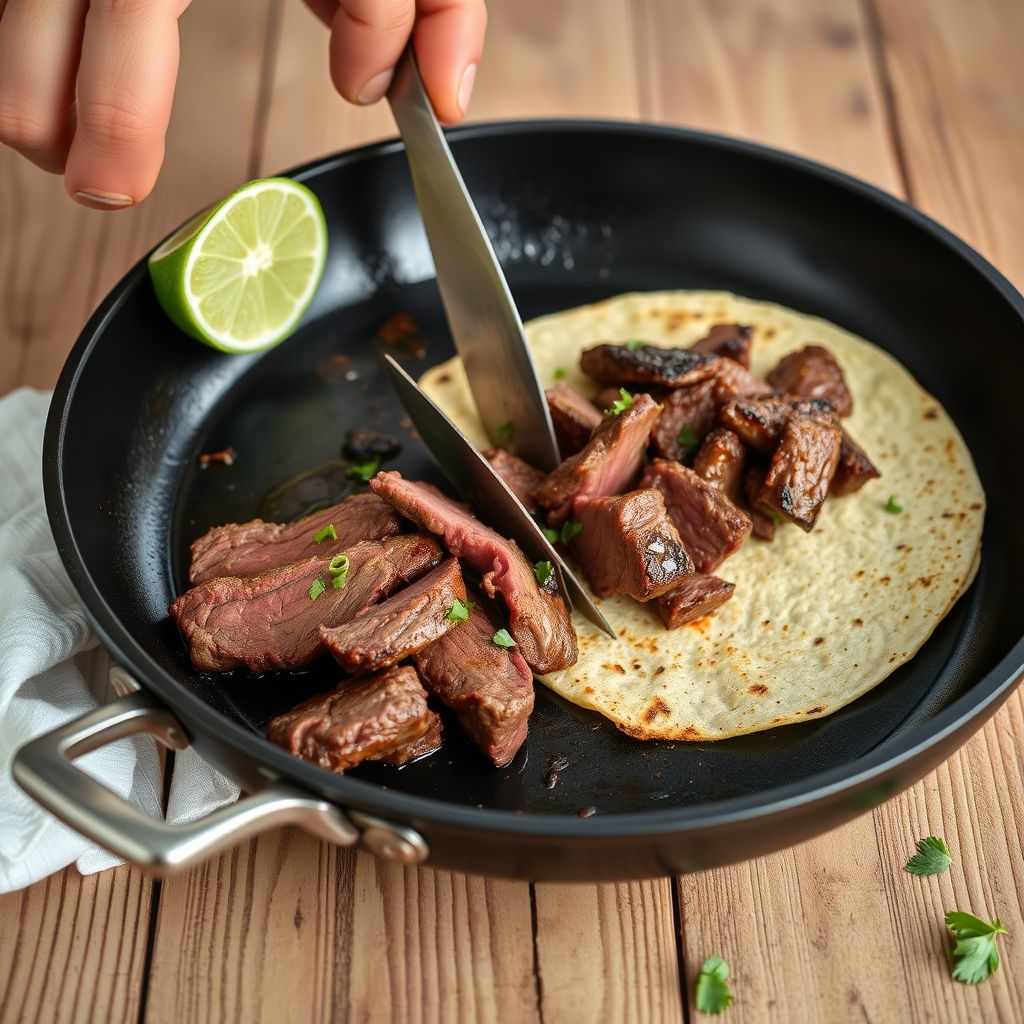 Mix tomatoes, onion, jalapeño, cilantro, lime juice, and salt in a bowl. Taste and adjust lime or salt as needed. Let it sit while preparing the beef.