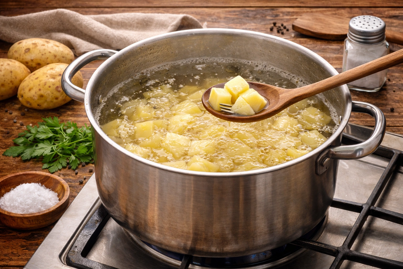 Place the chopped potatoes in a large pot and cover them with cold water. Add a generous pinch of salt. Bring to a boil over medium-high heat and cook until the potatoes are fork-tender, about 15-20 minutes.Don't overcook the potatoes to avoid them becoming too mushy.Heating the Cream