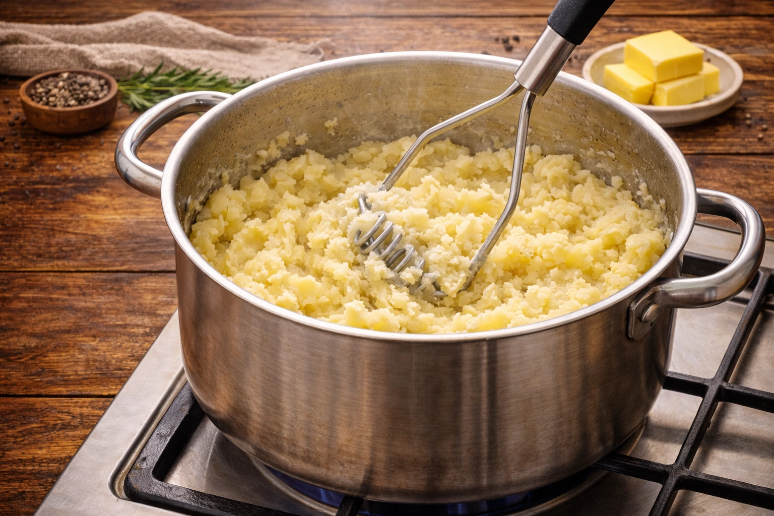 Drain the cooked potatoes and return them to the pot. Mash them using a potato masher until smooth.For extra creamy texture, pass the mashed potatoes through a potato ricer or a fine-mesh sieve.Adding the Cream