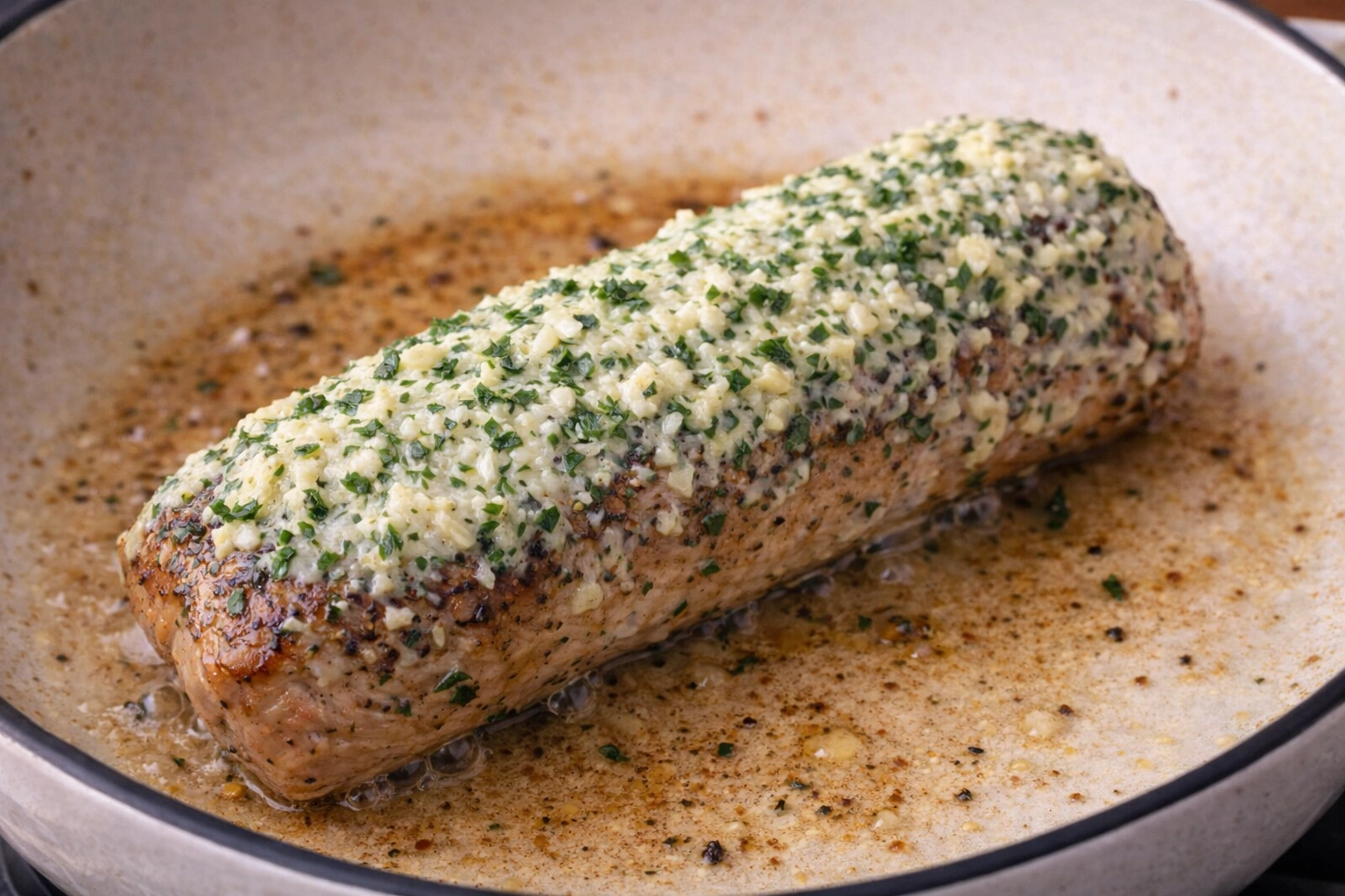 Heat a skillet over medium-high heat. Add a bit of oil. Sear the pork tenderloin on all sides until golden brown, about 2-3 minutes per side.Searing helps lock in the juices and adds flavor to the pork.Coat with Garlic Butter