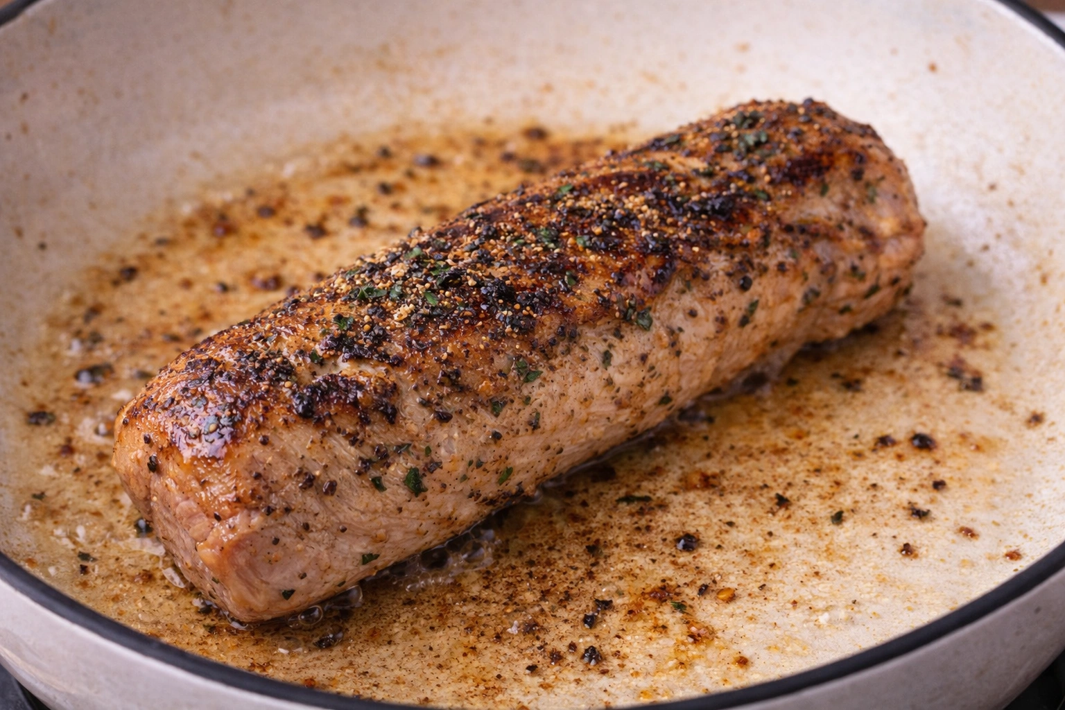 Transfer the pork tenderloin to a baking dish. Roast in the preheated oven for 20-25 minutes, or until the internal temperature reaches 145°F (63°C).Baste the pork with the pan juices halfway through cooking for extra flavor.