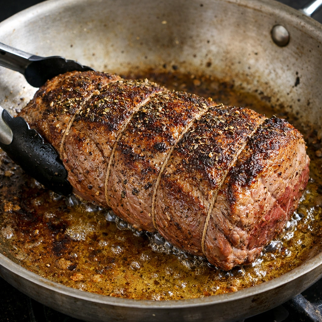 Season a beef roast with salt, pepper, garlic powder, and thyme. Sear all sides in a hot pan with olive oil until browned.This step locks in the juices and creates a flavorful crust.Roast the Beef