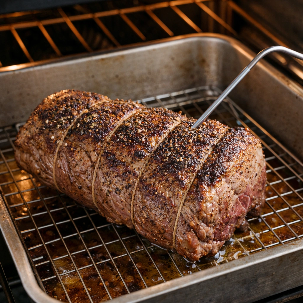 Transfer the seared roast to a preheated oven at 350°F (180°C) and roast until the internal temperature reaches 135°F (57°C) for medium-rare.Use a meat thermometer for accuracy.Rest and Slice