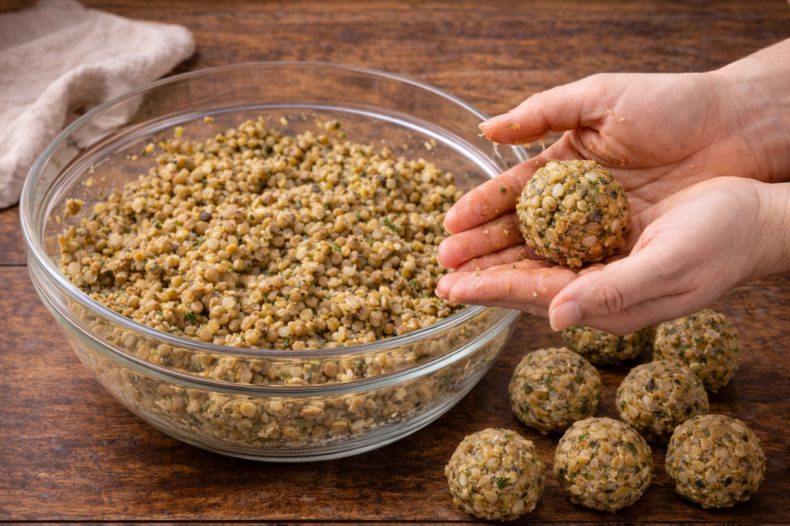 Using your hands, form the mixture into small, golf ball-sized meatballs, compacting them just enough to hold together.